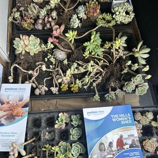 Who doesn’t love a Bunnings’ sausage sizzle? Positive Vibes gets involved in this annual market, selling merchandise made by The Hills Women’s Shed.